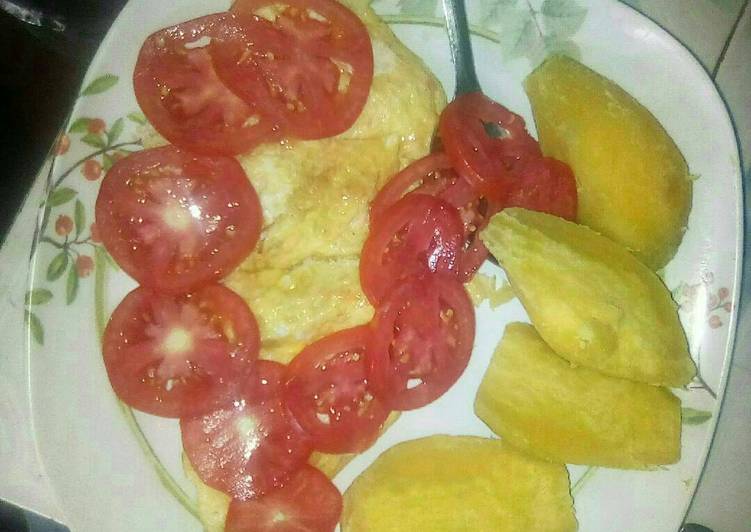Steps to Make Any-night-of-the-week Fried eggs,boiled sweet potatoes and tomatoe