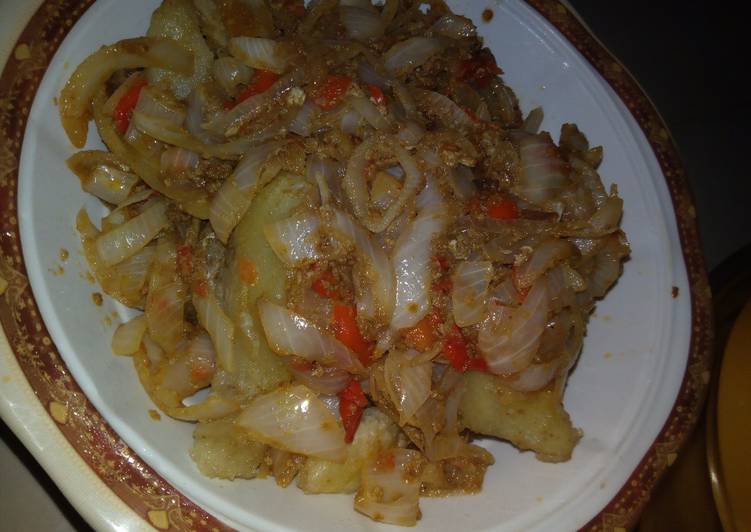 Recipe of Favorite Sweet potatoes(fried with egg)and sauce